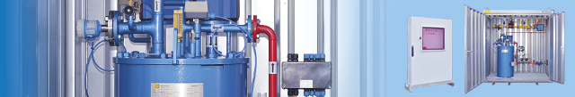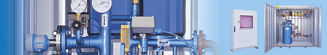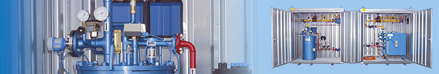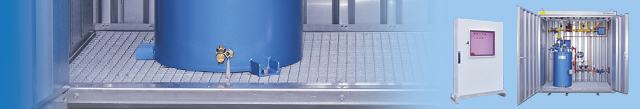 Selbstverständlich kann jeder Verdampfer werkszeitig zu einer auf die jeweilige Anforderung abgestimmten betriebsbereiten Verdampferanlage erweitert werden, die dann auf einem Grund-rahmen montiert oder in einem Gerätecontainer installiert wird.